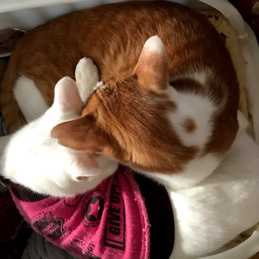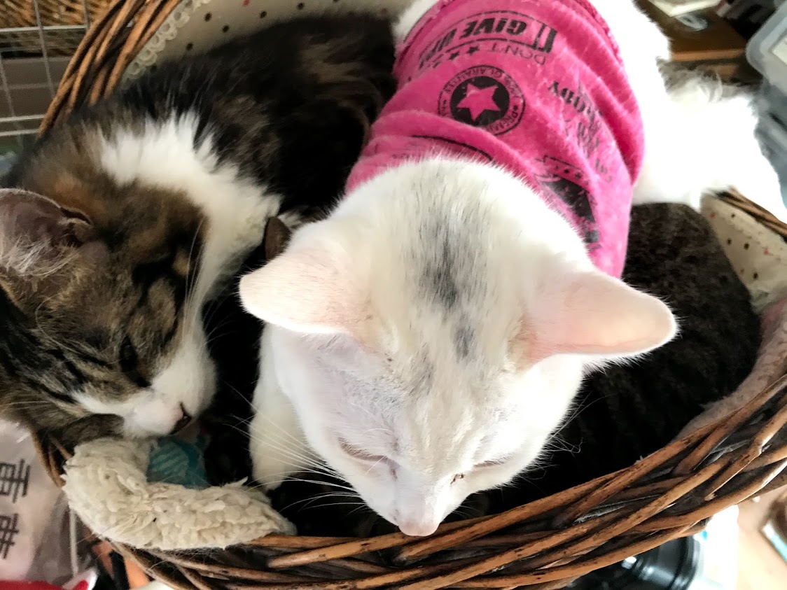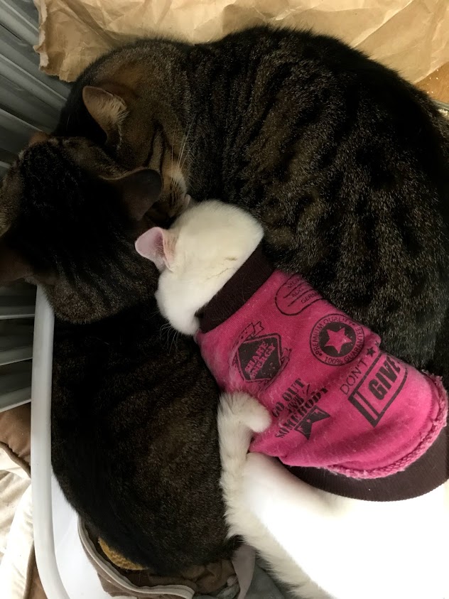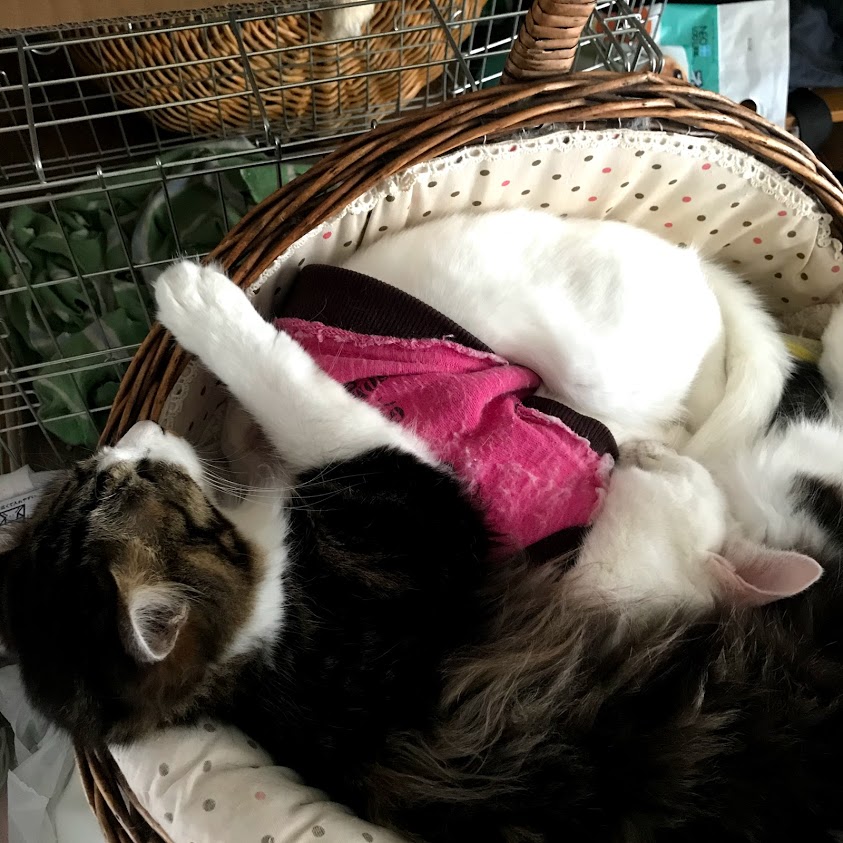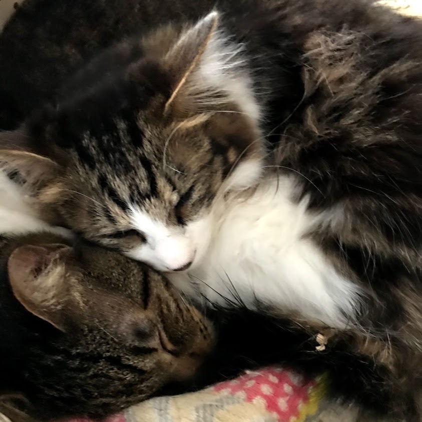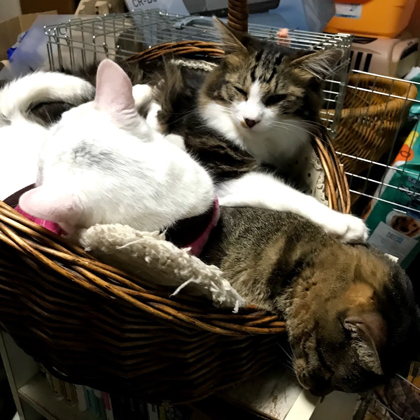 寒いので猫たちがくっつく。
