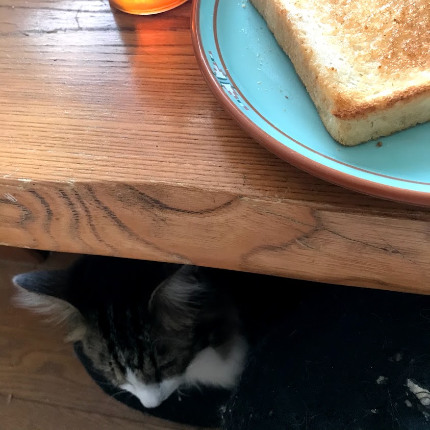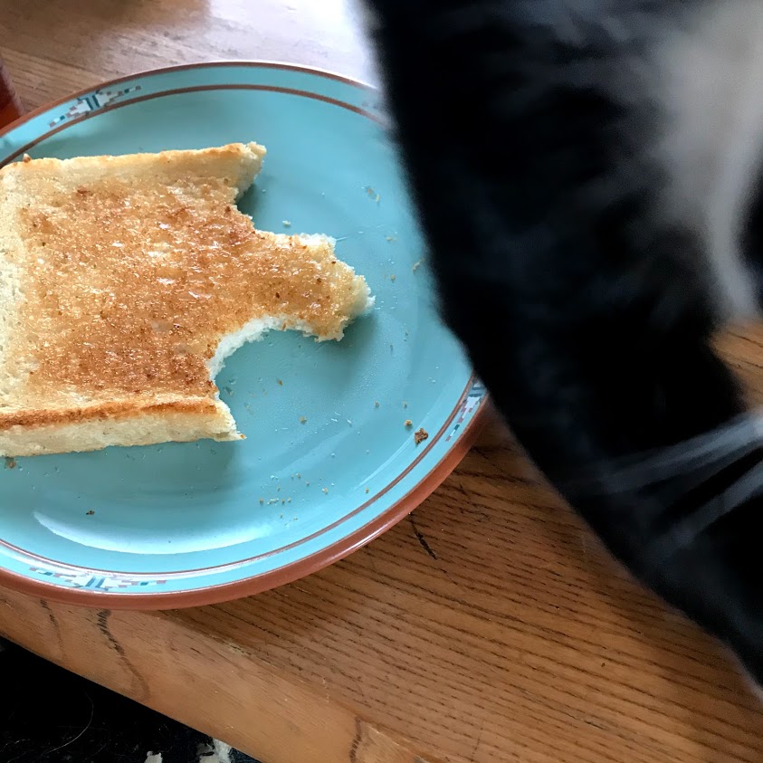 朝、トーストを食べるのに座ろうとしたら、