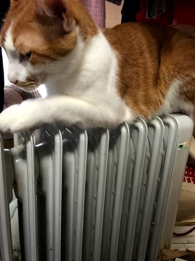 までろんはヒーターの上。