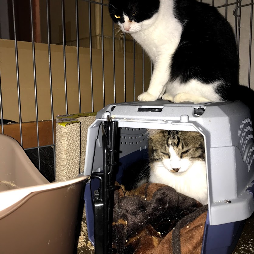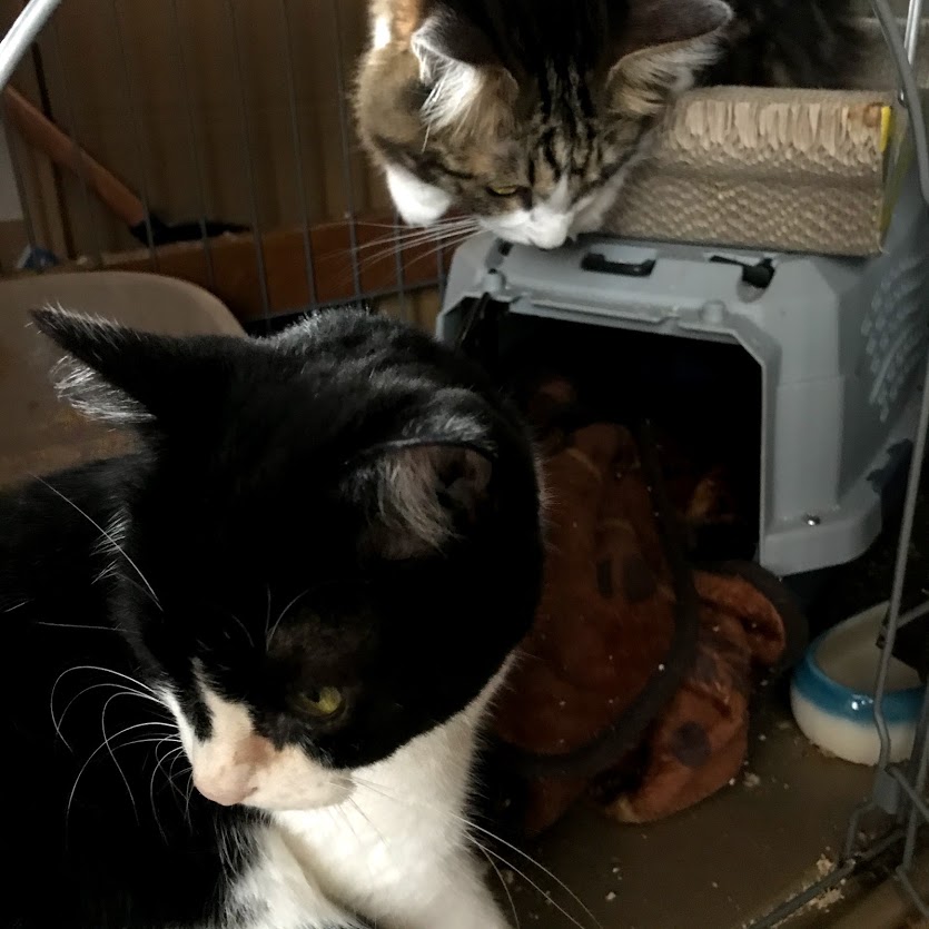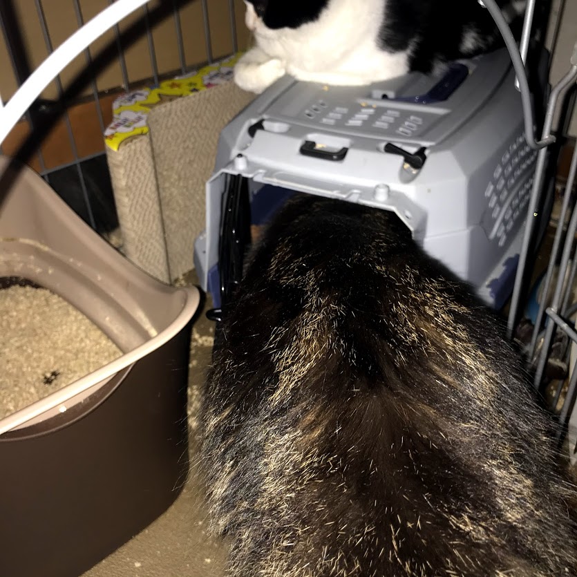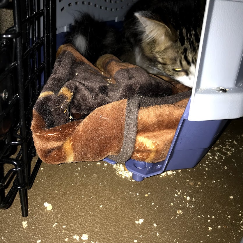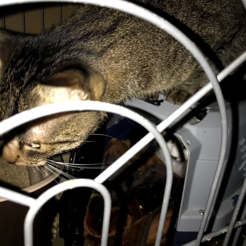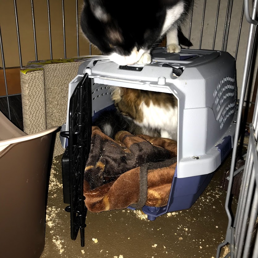 今朝はキャリーの中から出てきました。