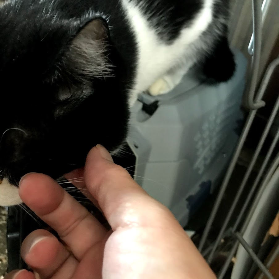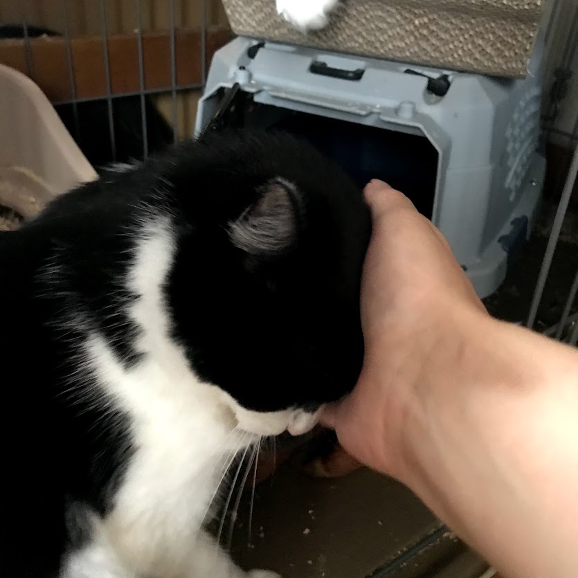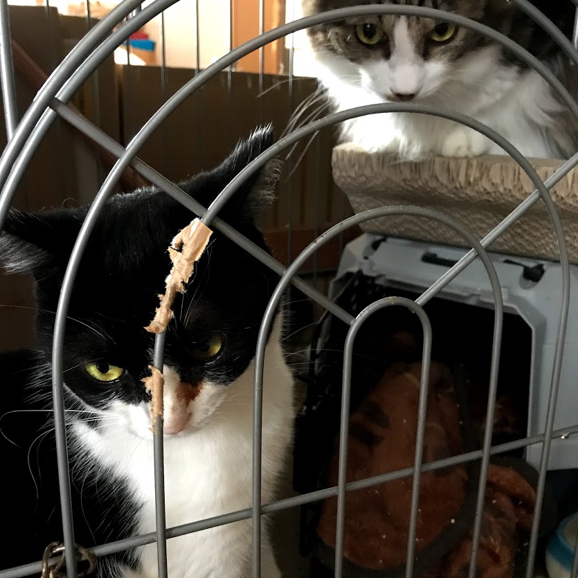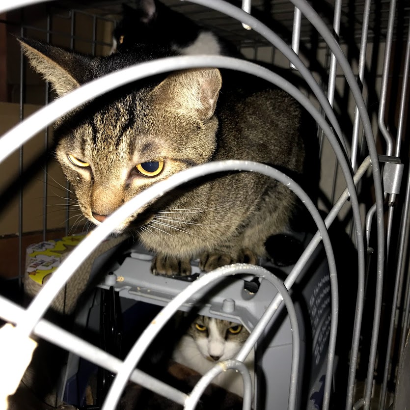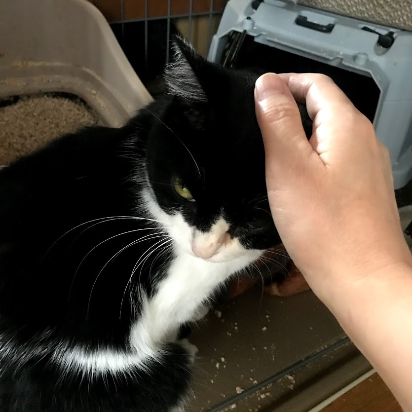 今朝はキャリーの中から出てきました。