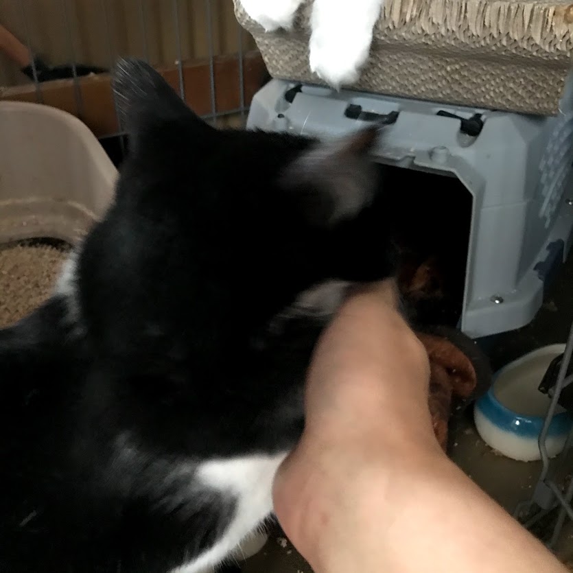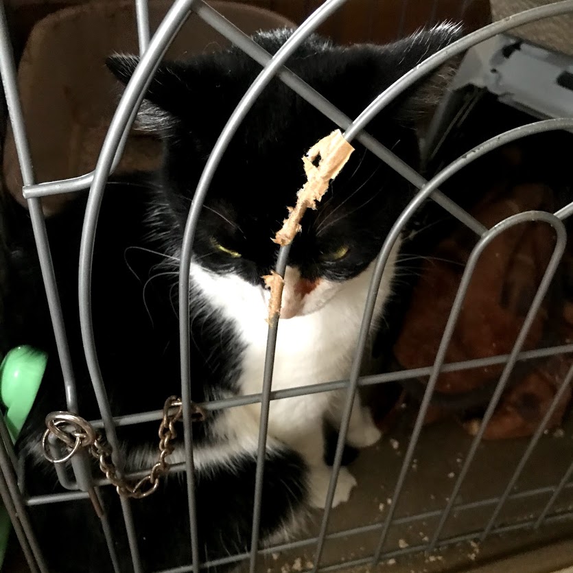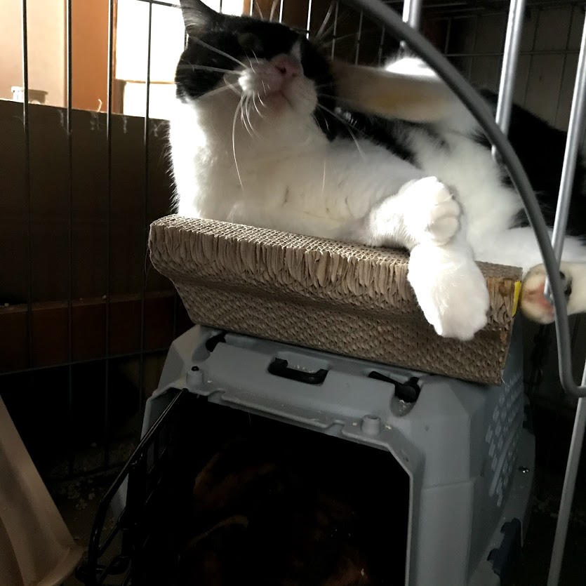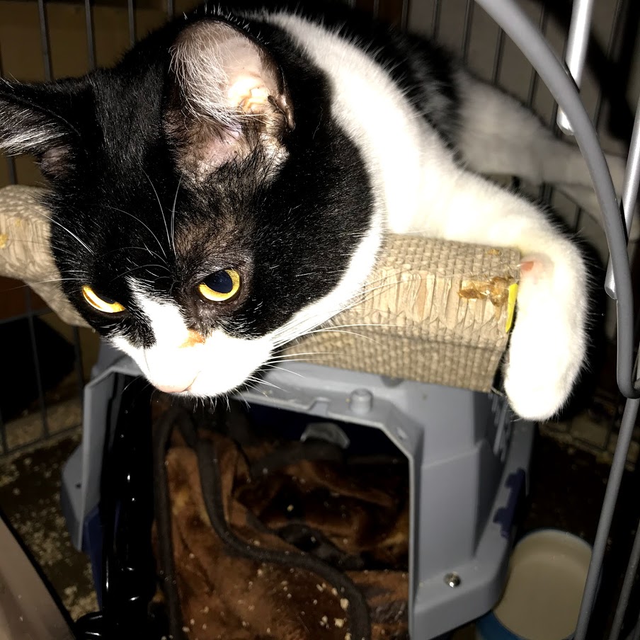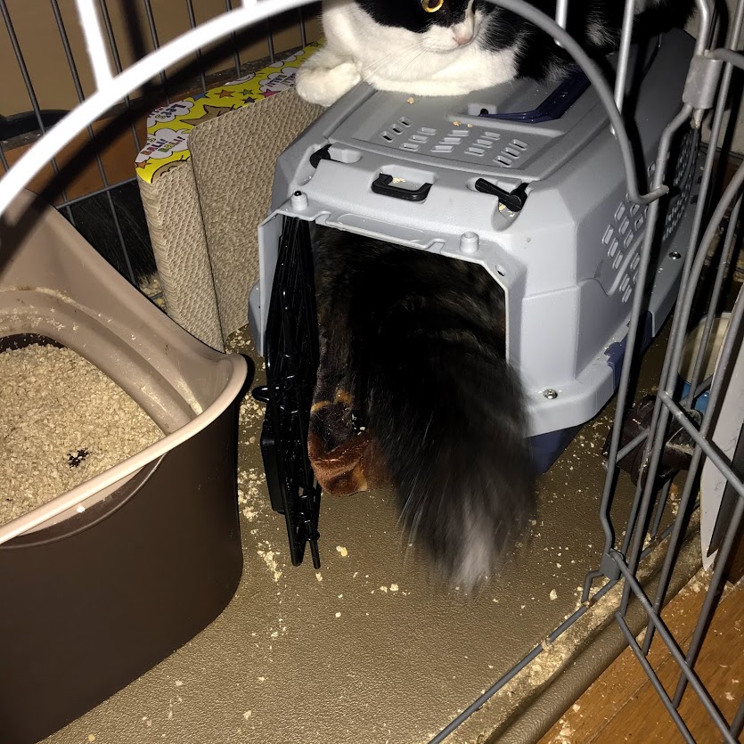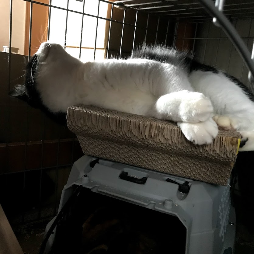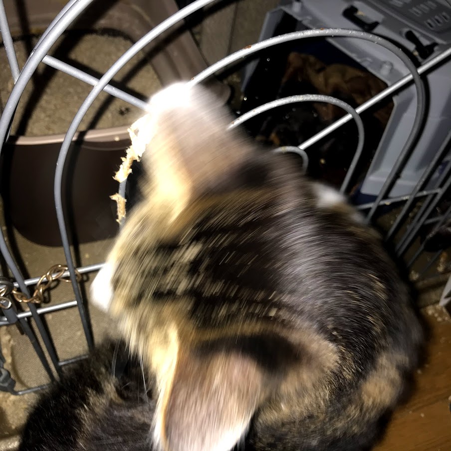 ガブはキラクちゃんのケージの爪とぎに寝たいだけだったらしい。