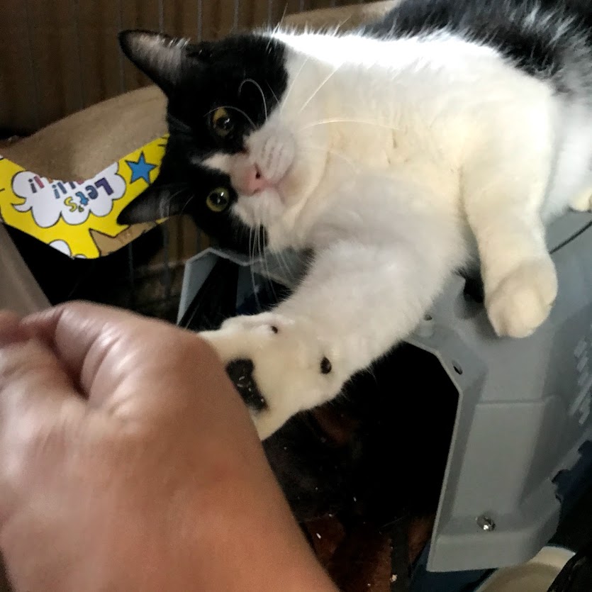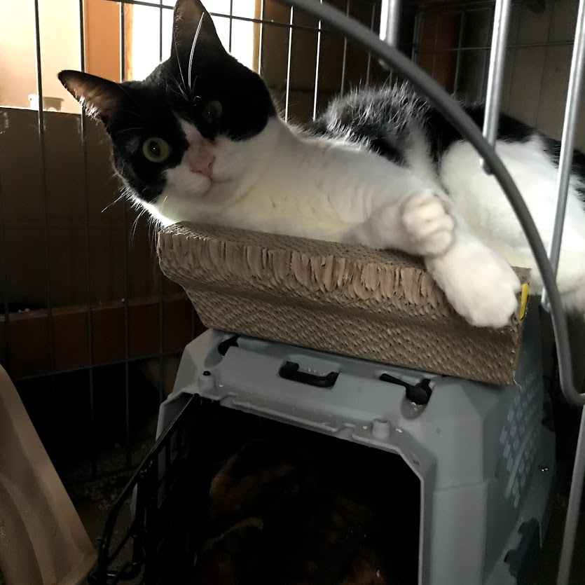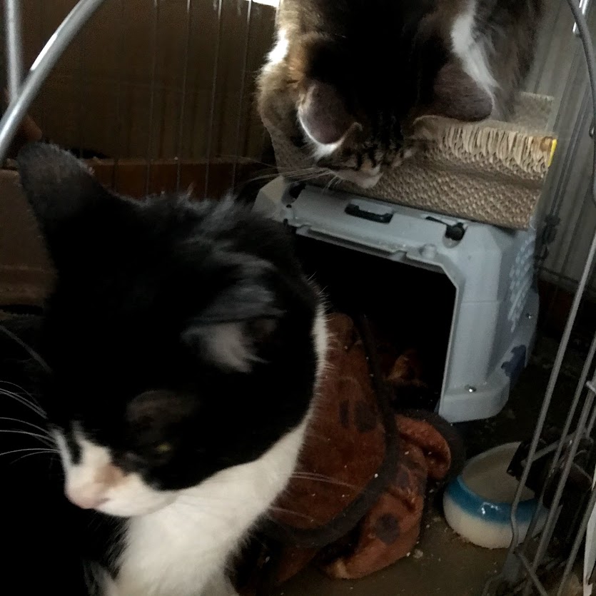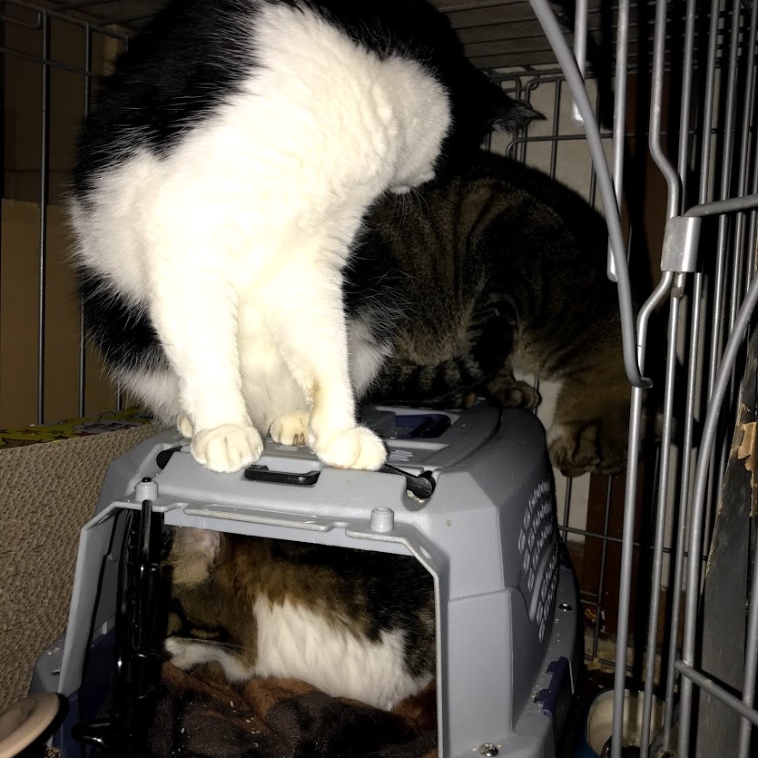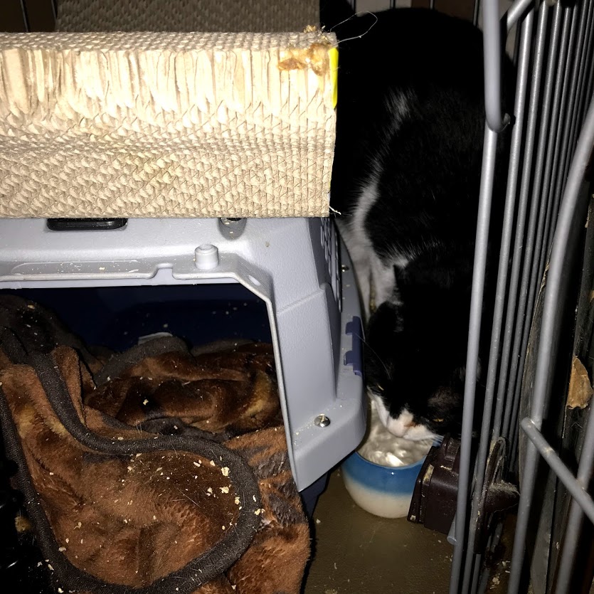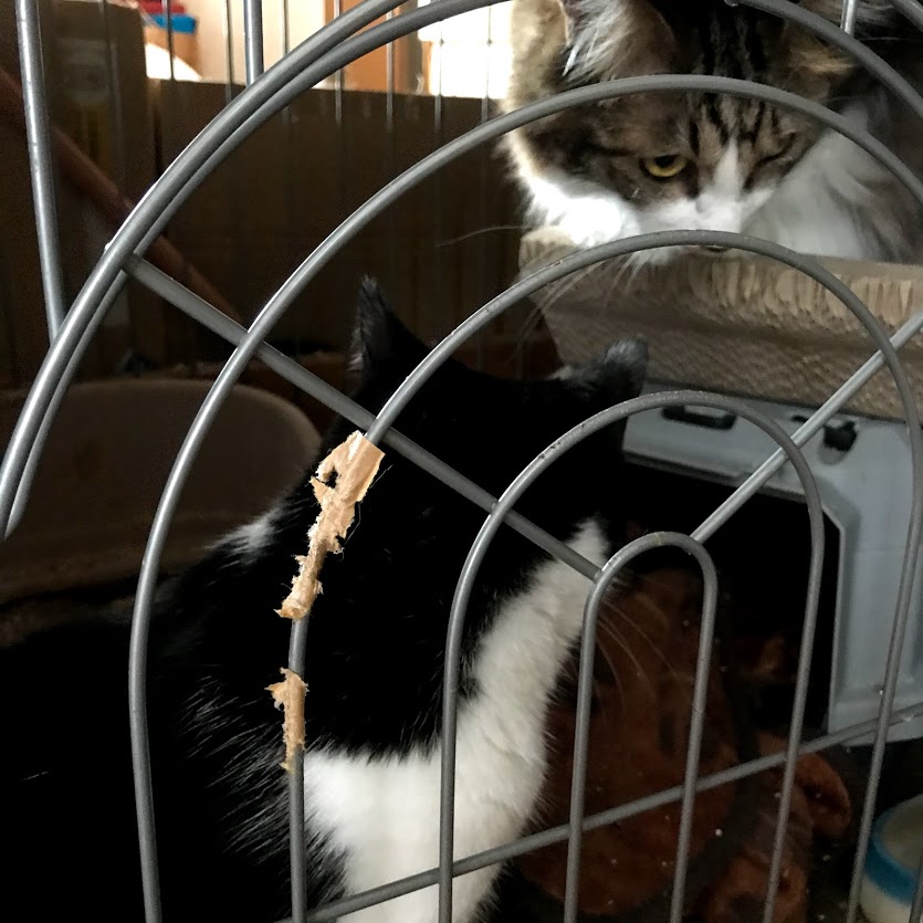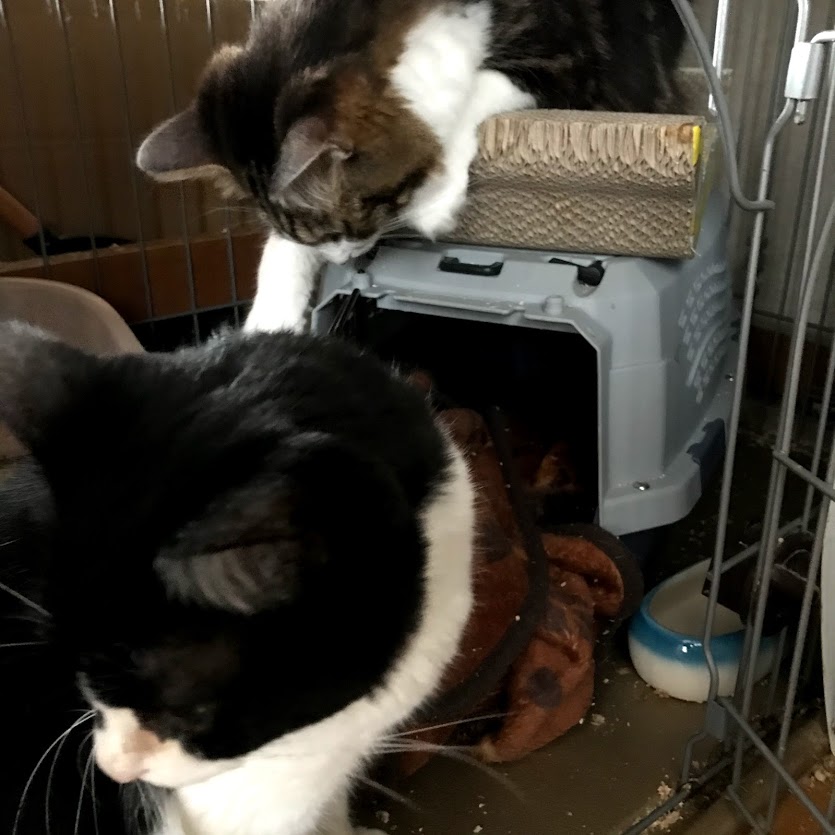 ガブはキラクちゃんのケージの爪とぎに寝たいだけだったらしい。