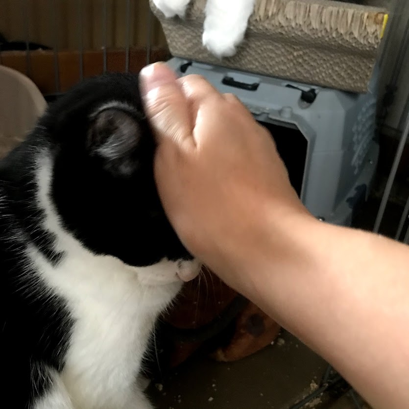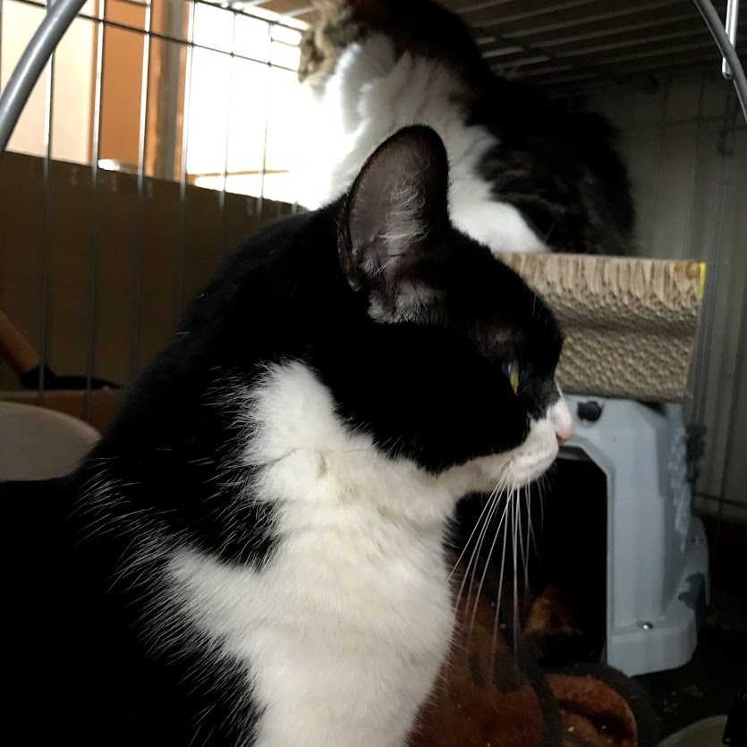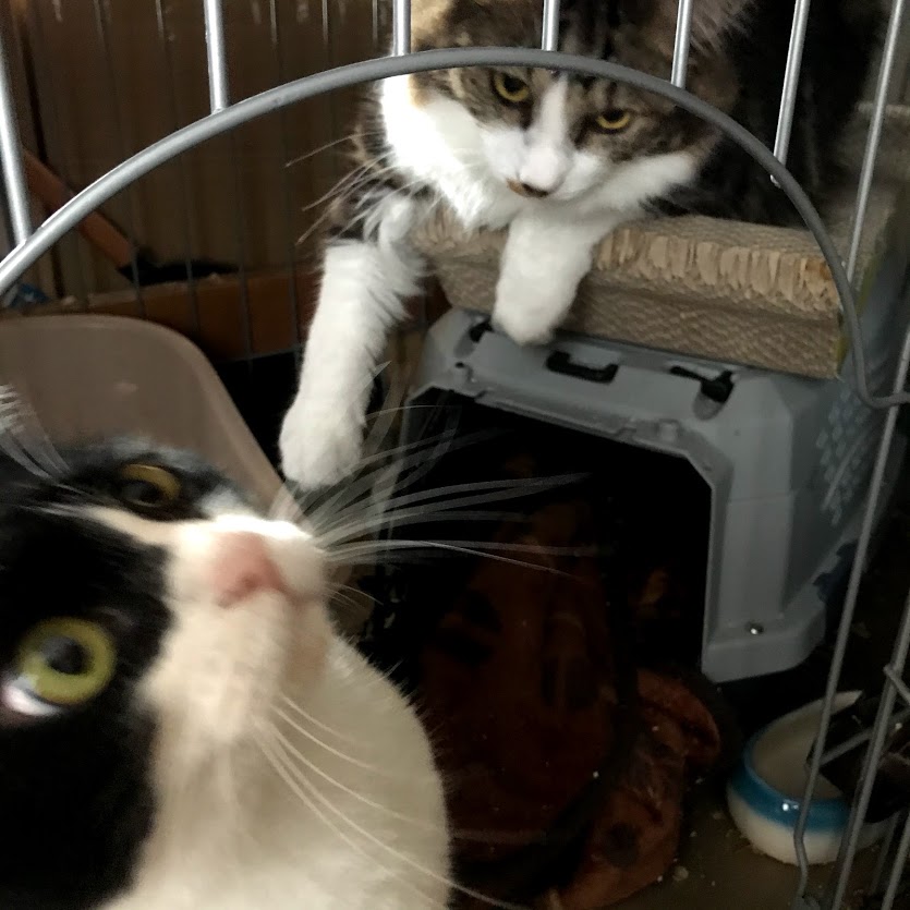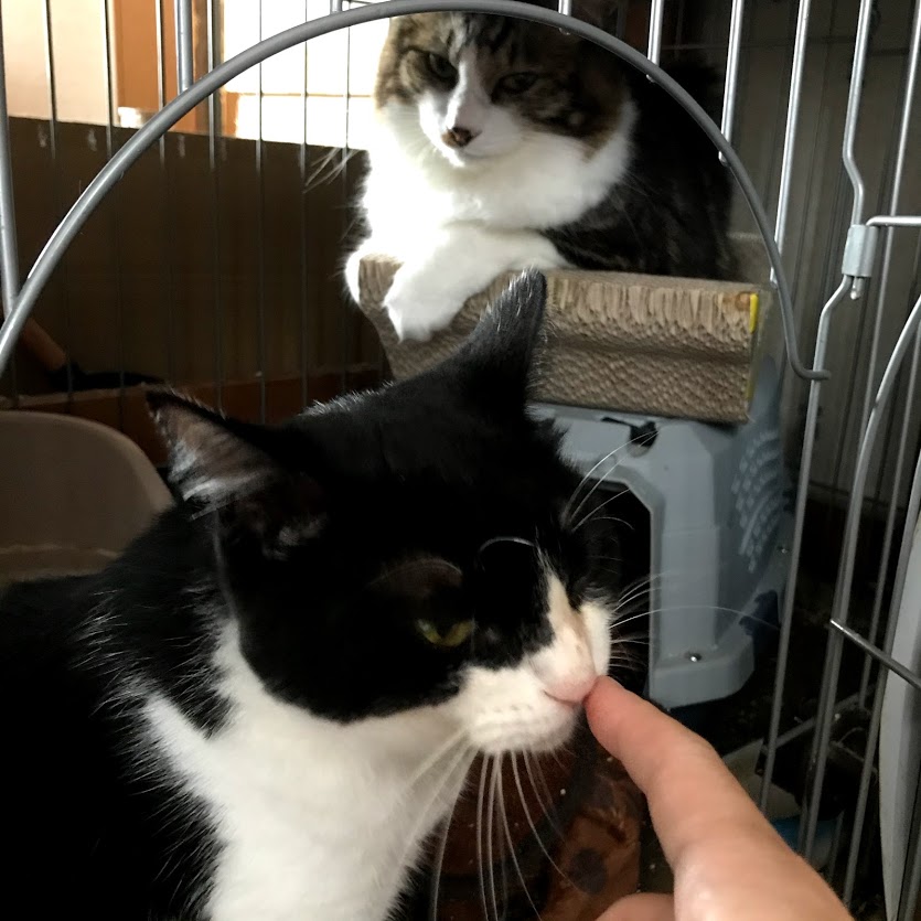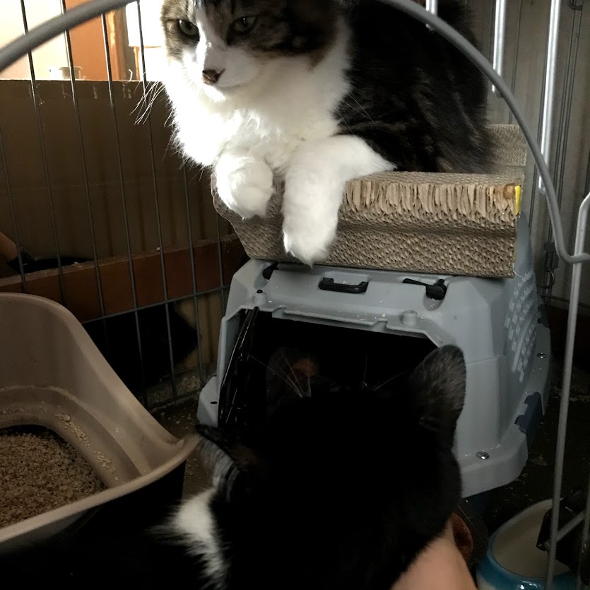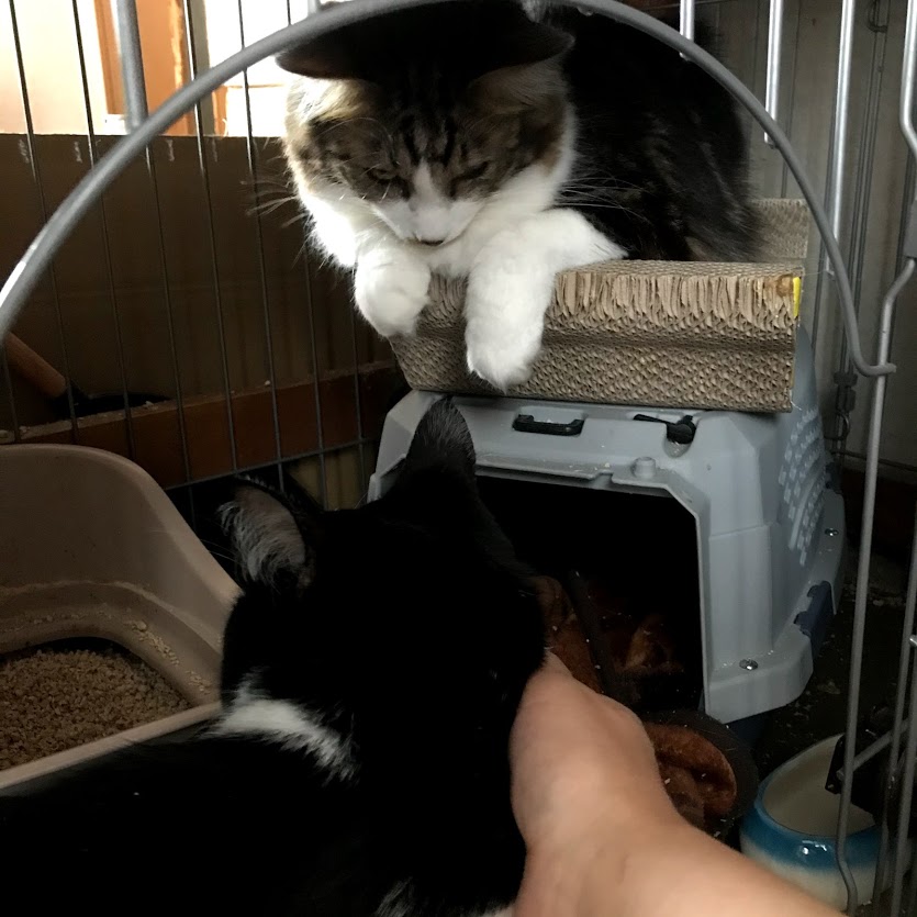 ガブがキラクちゃんのケージの前で待っているので、