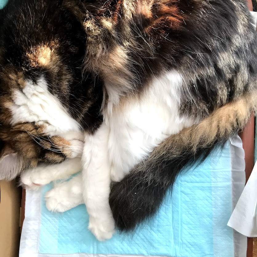 はなのトイレは、動かしてもまた寝てる。