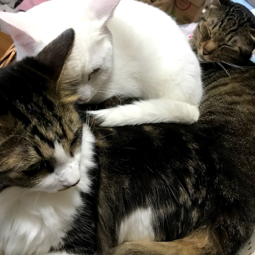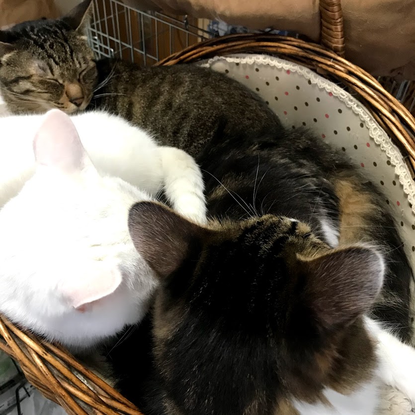 寒くなったから、かごがぎゅうぎゅう。