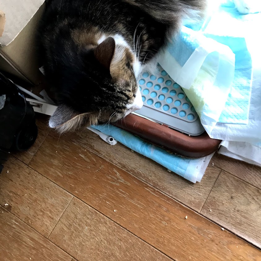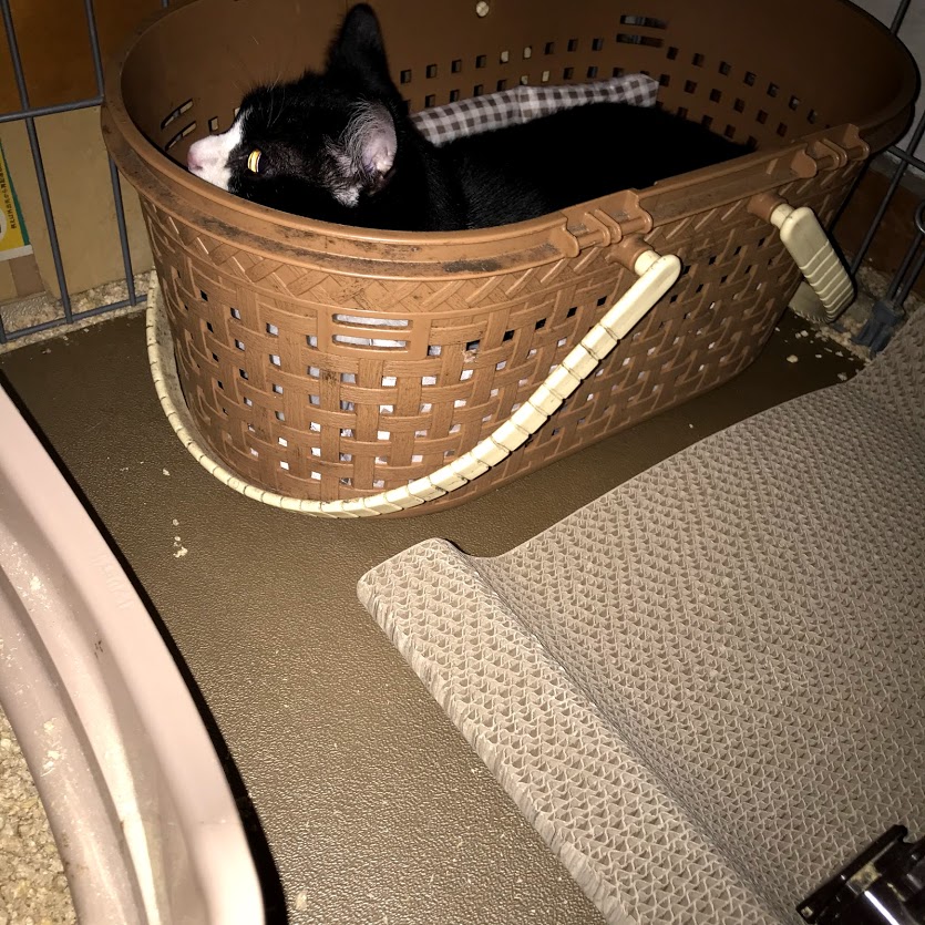 かごに入れていたクッションは、吐いておしっこもしてあったので捨てましたー