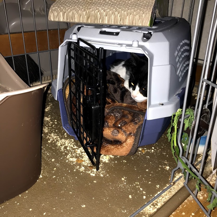 うちの猫に人気のキャリーバッグの下のかごにクッション、