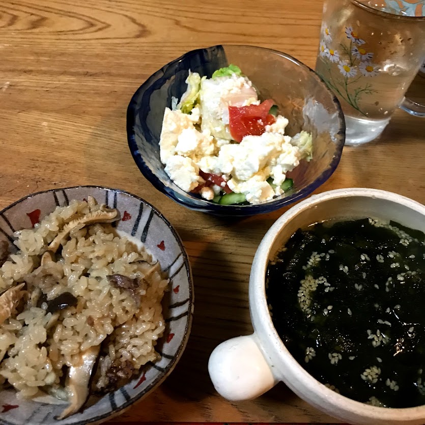 サラダはサニーレタス、トマト、きゅうり、豆腐。