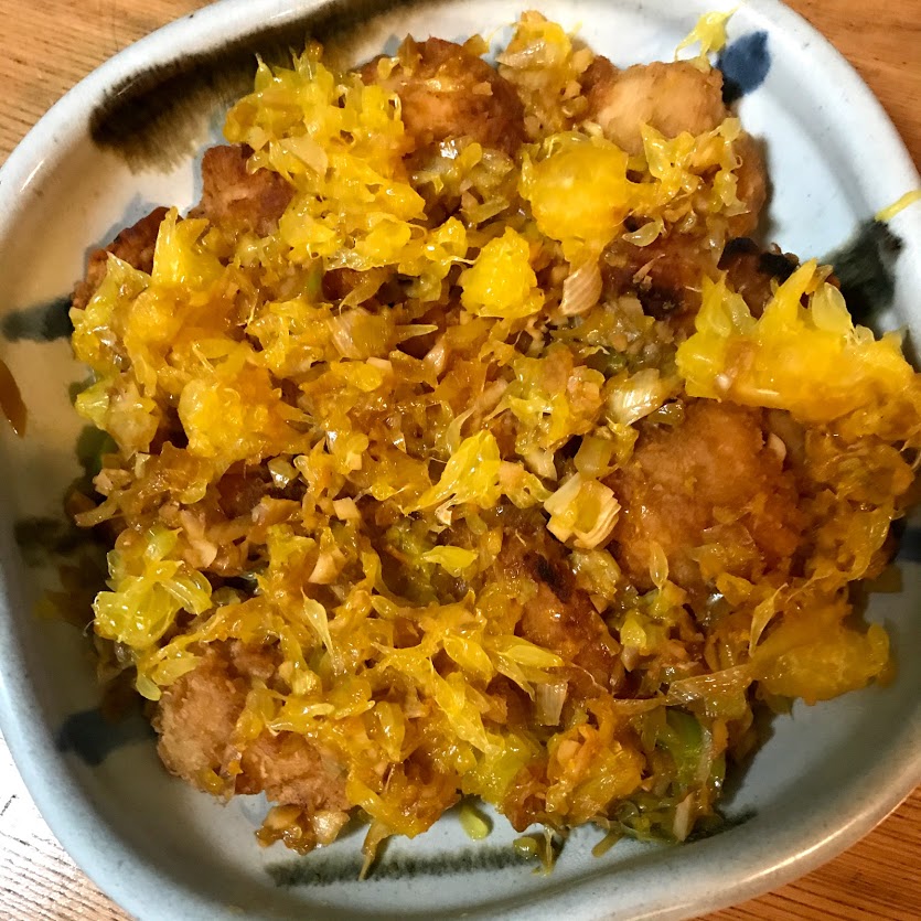 冷凍・鶏のから揚げにかけて、甘夏チキン。